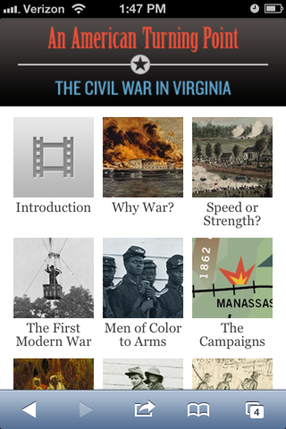 Connect to complimentary exhibit content including audio and video tours, participatory interactive activities, and enhanced views of objects and historical vistas with related content (augmented reality)